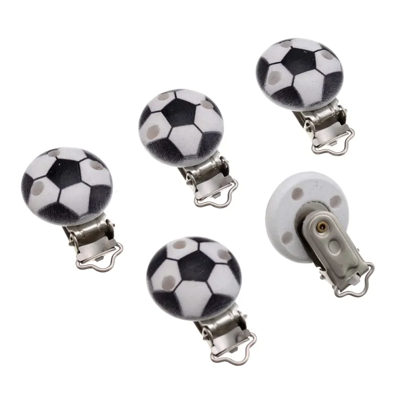 5PCs Wood Baby Pacifier Clips Football Metal Holders Cute Infant Soother Clasps Funny Accessories 4.8*2.9cm