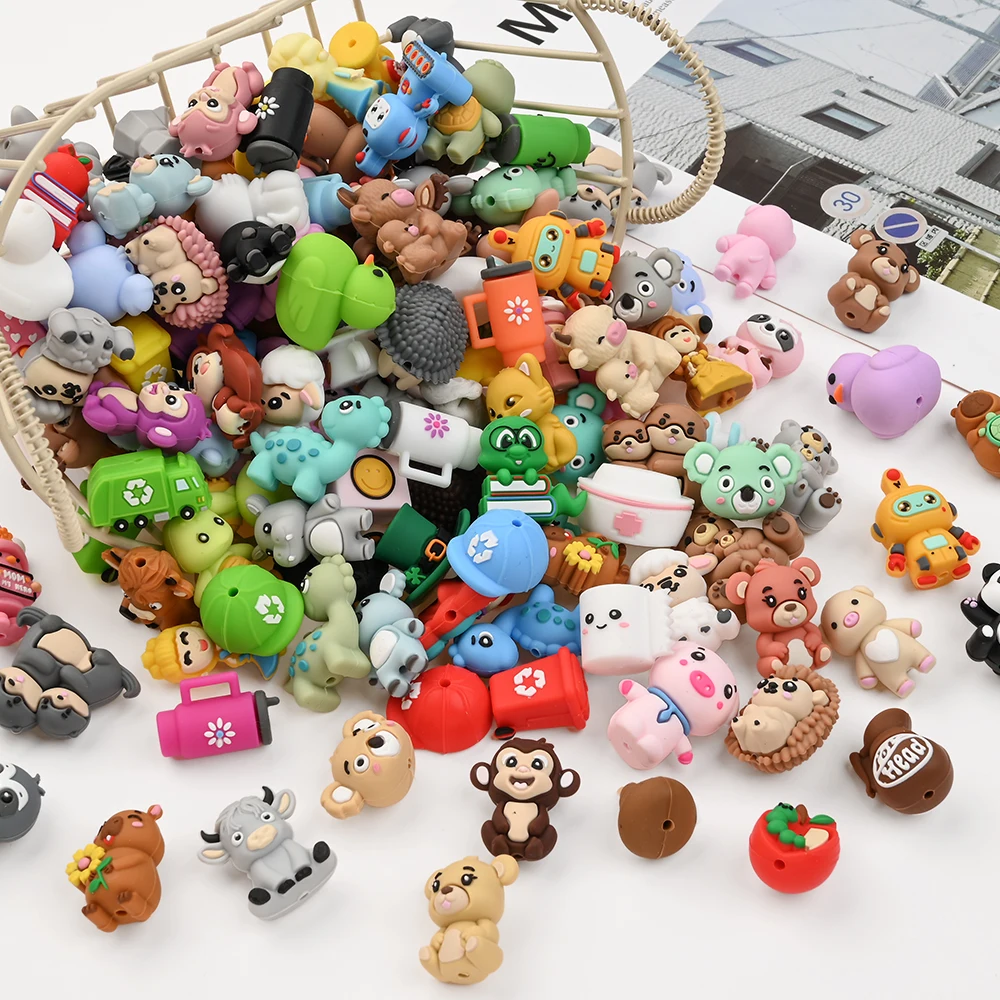 5Pcs Random Mixing 3D Animal Silicone Beads Food Grade Teether Beads for Homemade Pacifier Chain Dummy Holder Clips Accessories