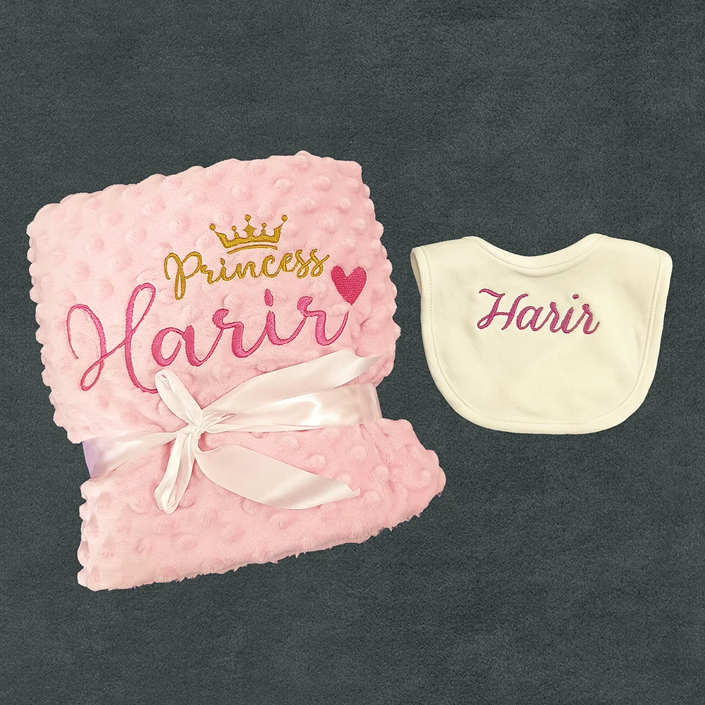 Name Personalized Baby Fleece Blanket Bib Set Crib Stroller Cot Bed Blanket Swaddle Wrap For Newborn Boy Girl Birthday Gift