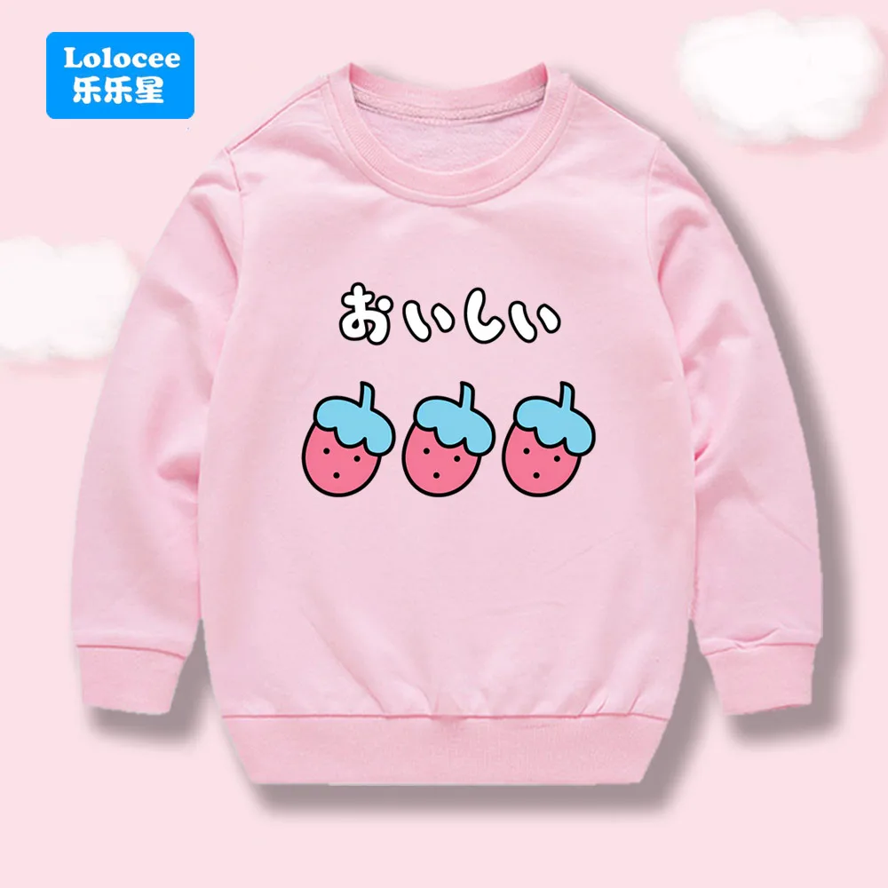 Children's Wear Autumn Tops Cartoon Strawberry Sweatshirt Loose Casual Crew Neck Pullover Long Sleeved Kids Clothing 4-14y CMSK1