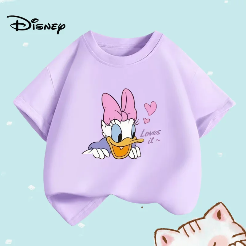 Summer Children Girl Cotton Clothes Disney Happy Daisy Cartoon Prints T-shirts Fashion Kid Baby Girls Short Sleeve Crew Neck Top