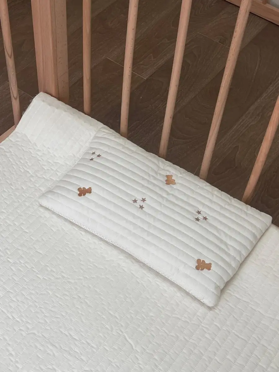1pcs Baby Pillow White Embroidery Cotton Breathable Flat Pillow Newborn Pillow Kindergarten Nap Pillow Suitable for Daily Use