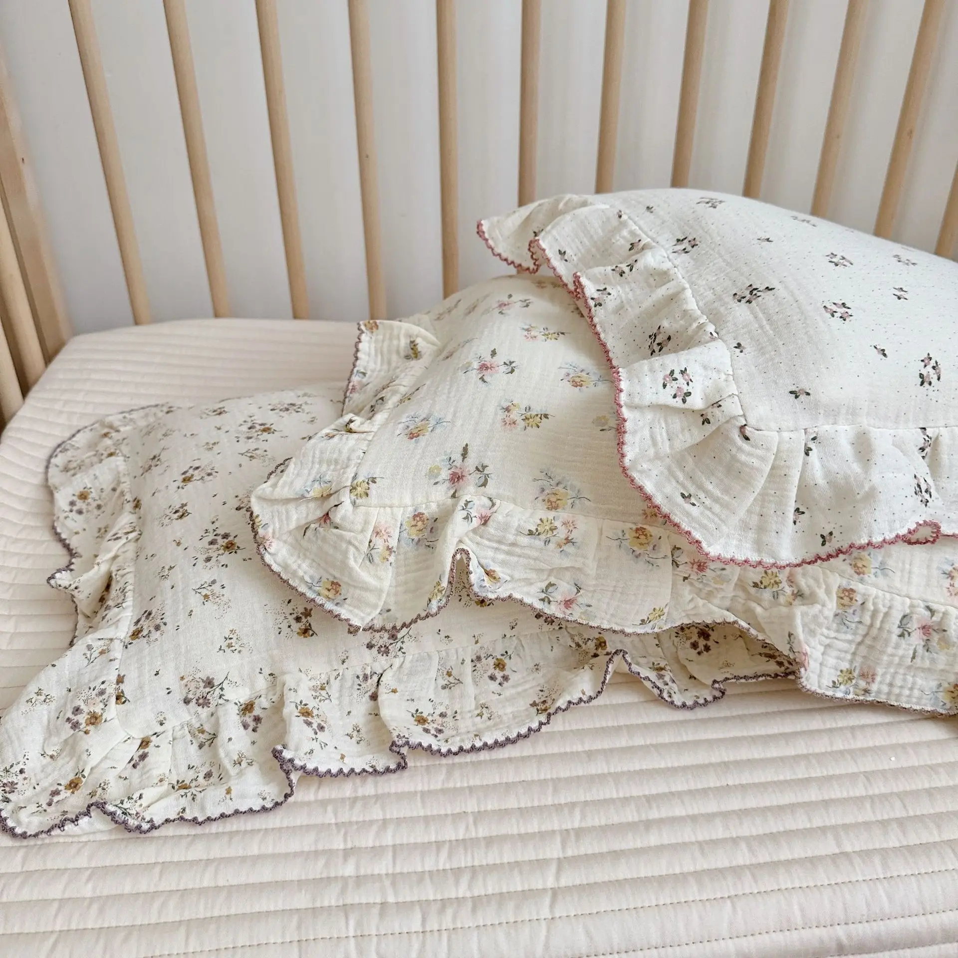 100% Cotton Gauze Pillowcases With Ruffles 48x74cm 30x50cm Sizes Cushion Cover for Bed Floral Style Adults Kids Pillowslip