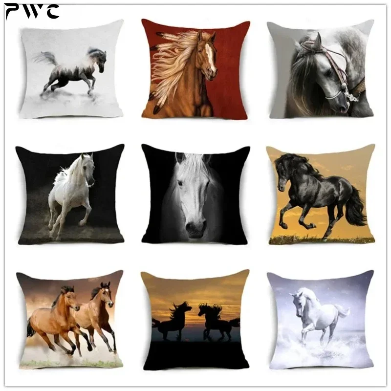 2023 New Horses Cotton Cushion Cover Steed Animal War Horses Home Decorative Pillow Cover for Sofa Car Nordic Pillowcase Vintage
