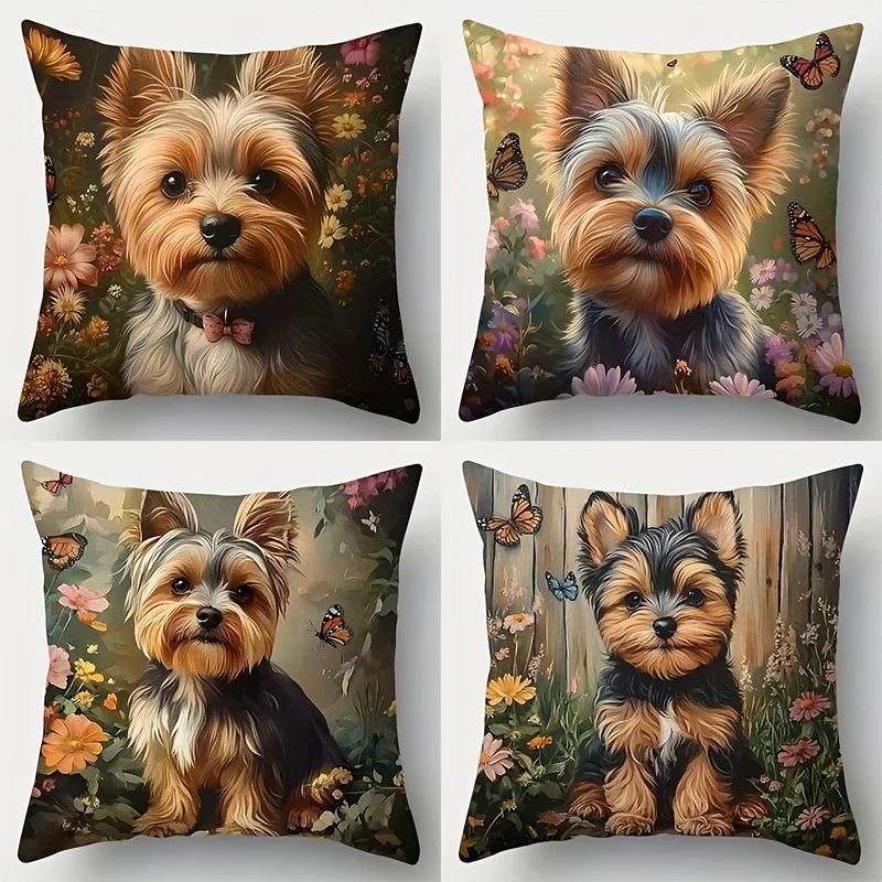 Yorkshire Terrier in Floral Garden PillowcasesLiving room sofa cushion cover, soft and comfortable, bedroom room decoration