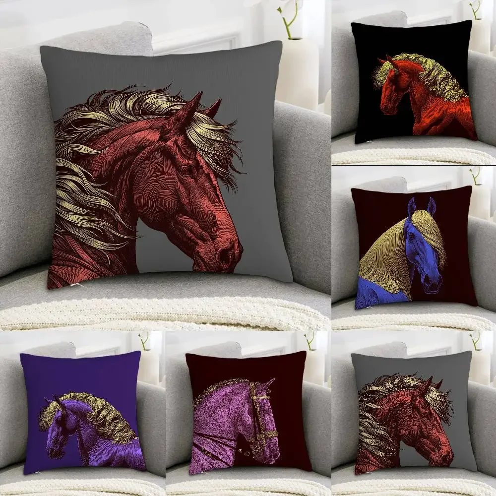 Cool Copper Horse Pillow Case Sofa Decorative Home Double-sided Print Plush Square Throw Pillow Covers Cushion Decor Cover