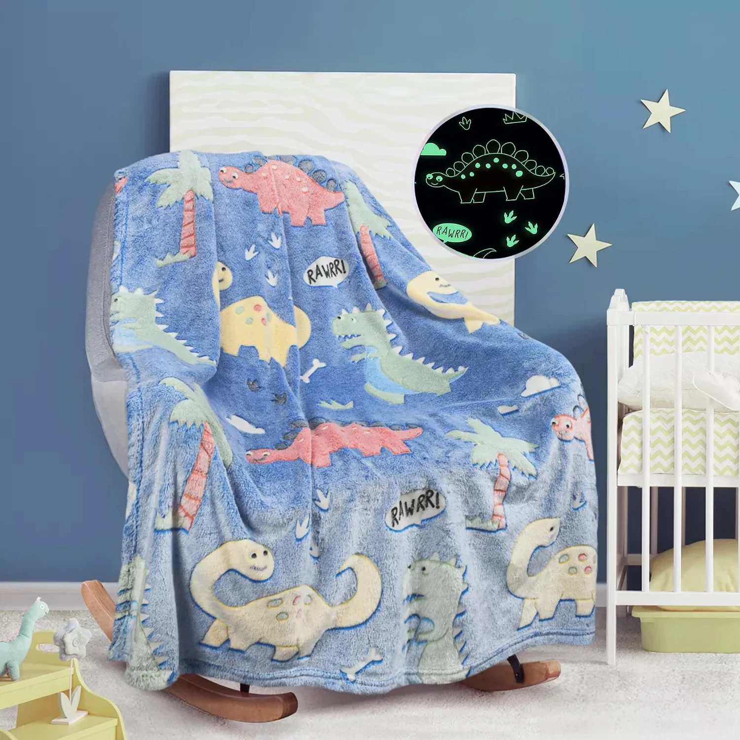 1pc Dinosaur Blanket for Boys, Glow in The Dark Blanket for Kids, Toddler Blanket, Dinosaur Gifts for Boys, Soft Fleece Blanket