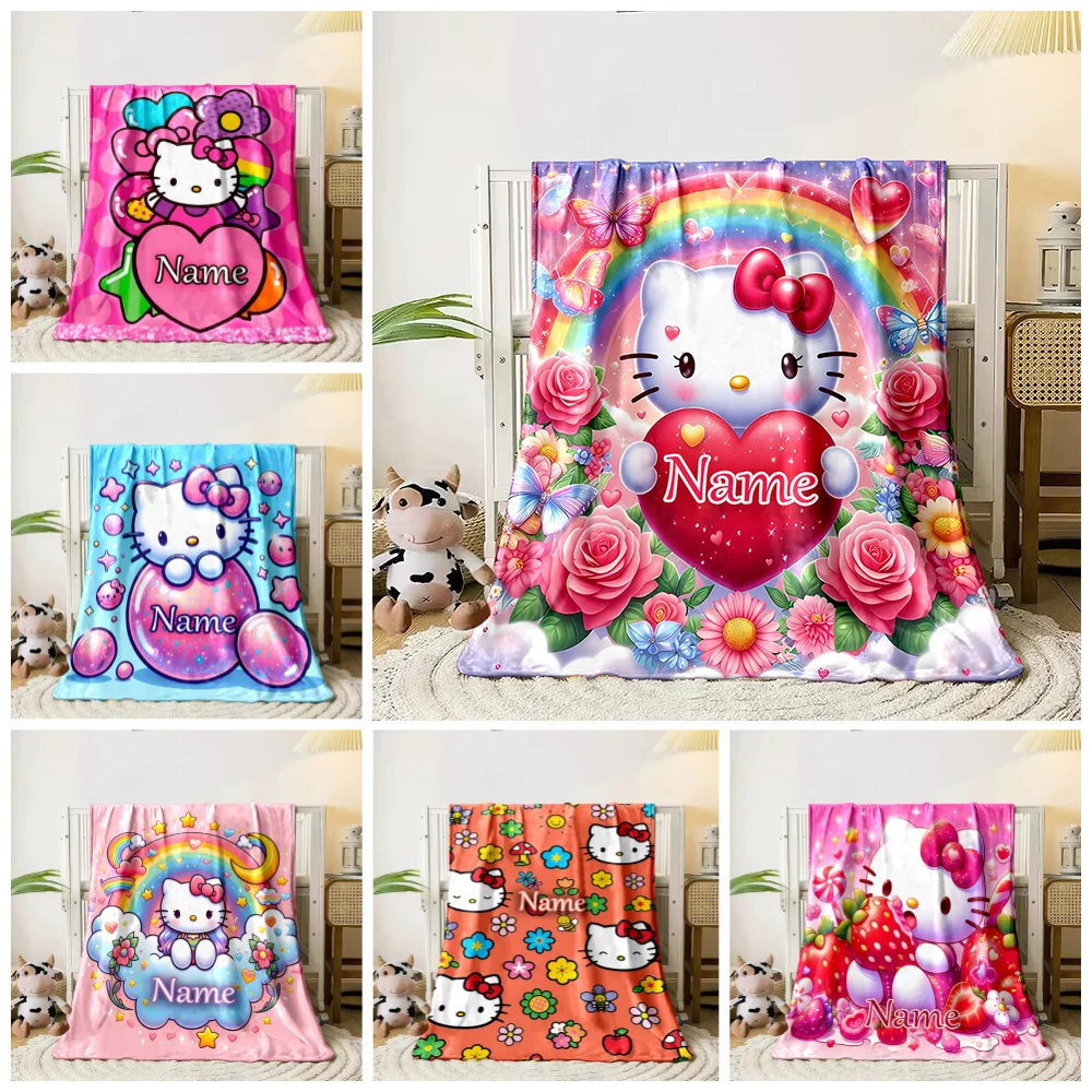 Customized Name Personalized Blanket Sanrio Hello Kitty Children Warm Soft Blankets Home Travel and Comfortable Blanket