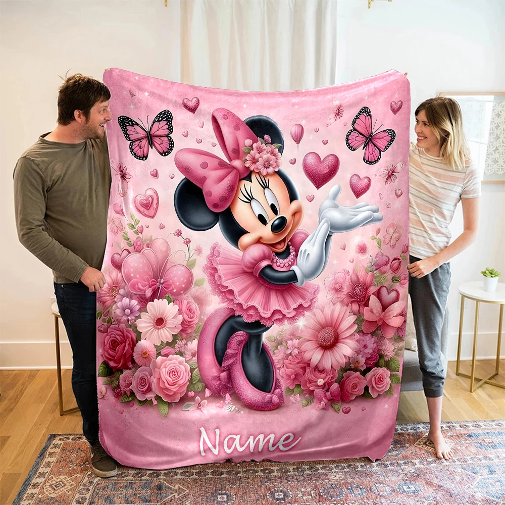 Personalized Custom Name Blanket Disney Minnie Mouse Printed Blanket for Sofa Bed Suitable for Birthday Christmas Grils Gifts