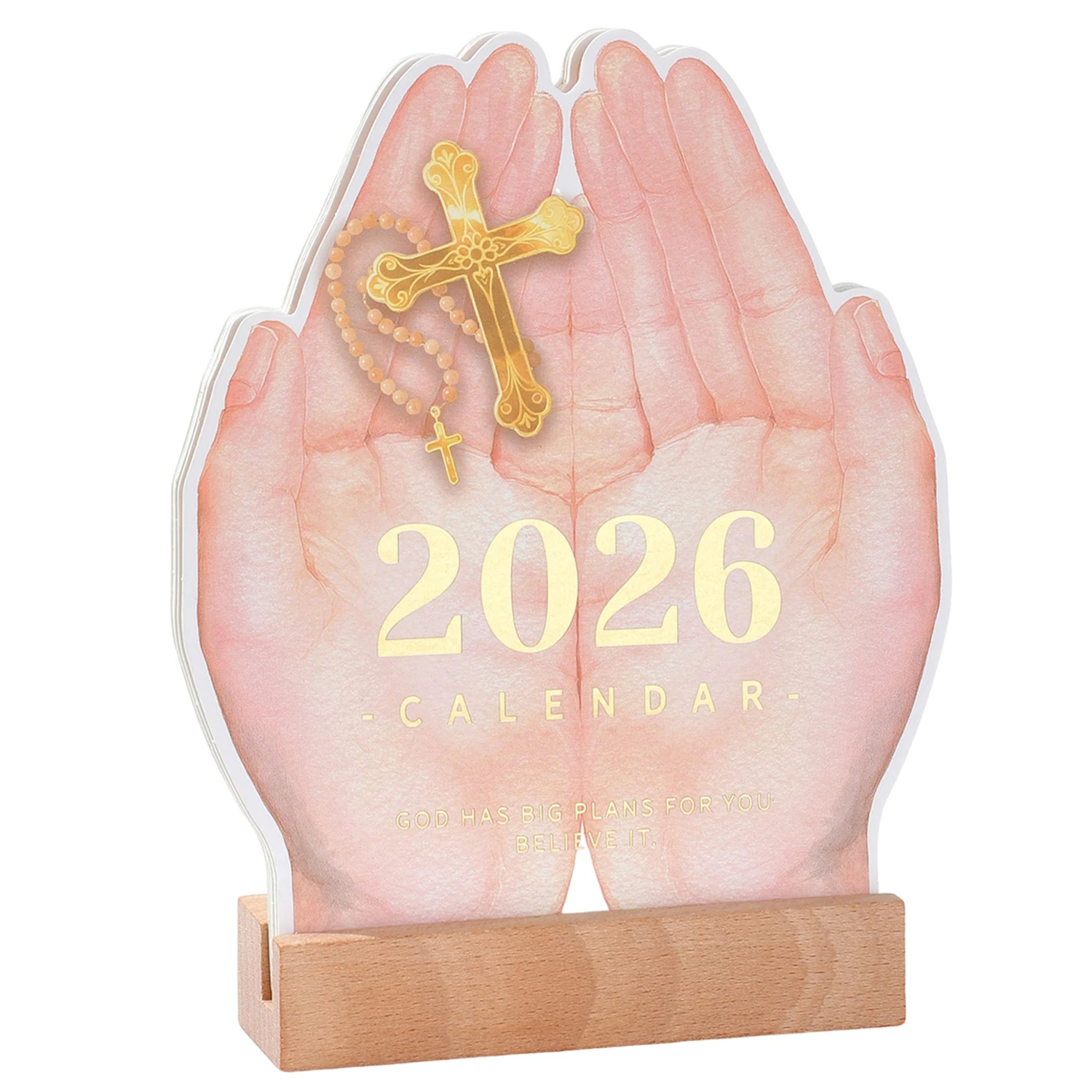 Hand Shape Christian Desk Calendar 2026, Wooden Base Flip Calendar with 12 Monthly Bible Verses, Inspirational Gift for Home, Off