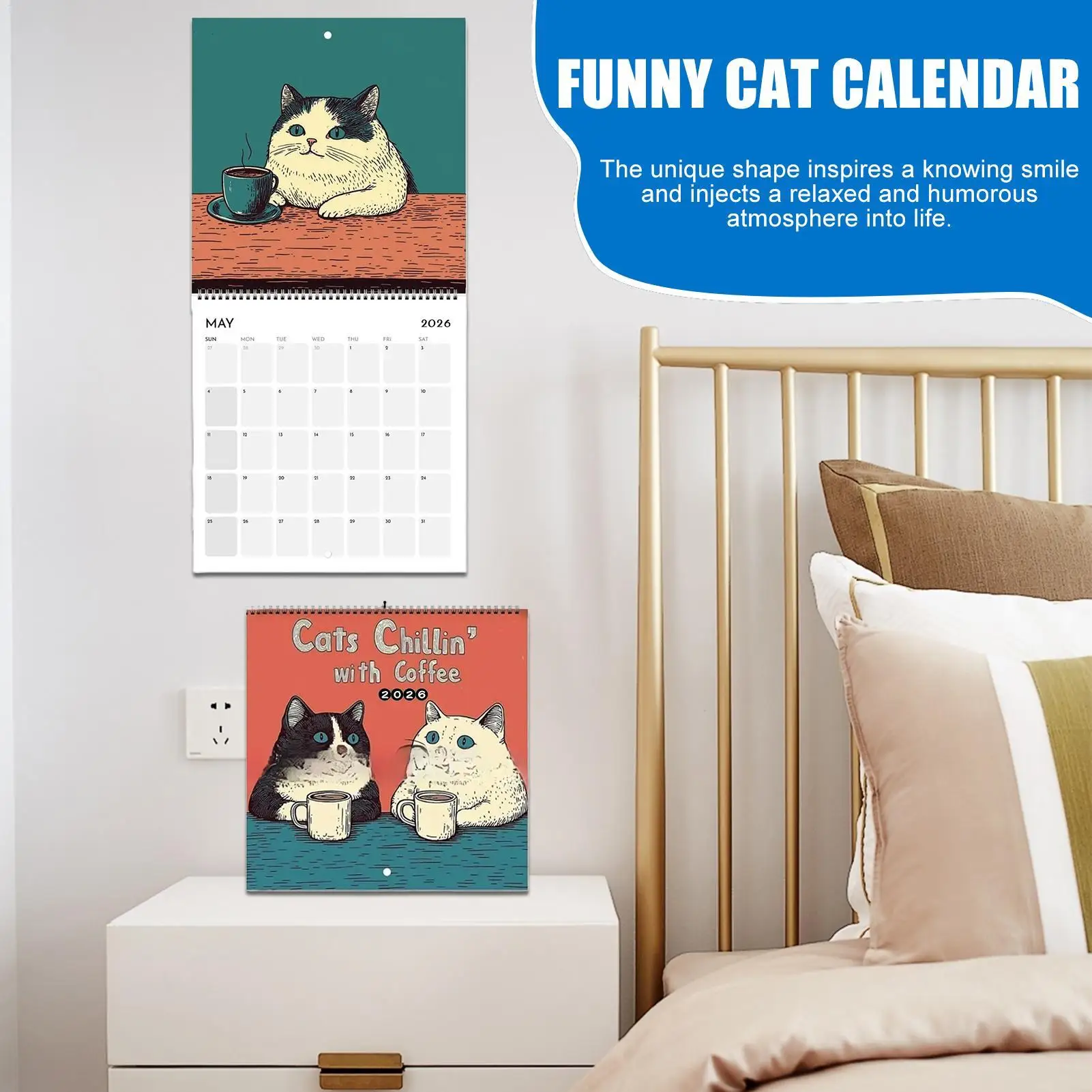 2026 Funny Cat Drinking Coffee Calendar Monthly Wall Planner Jan to Dec, Home Office School Nursery Scheduling Supplies