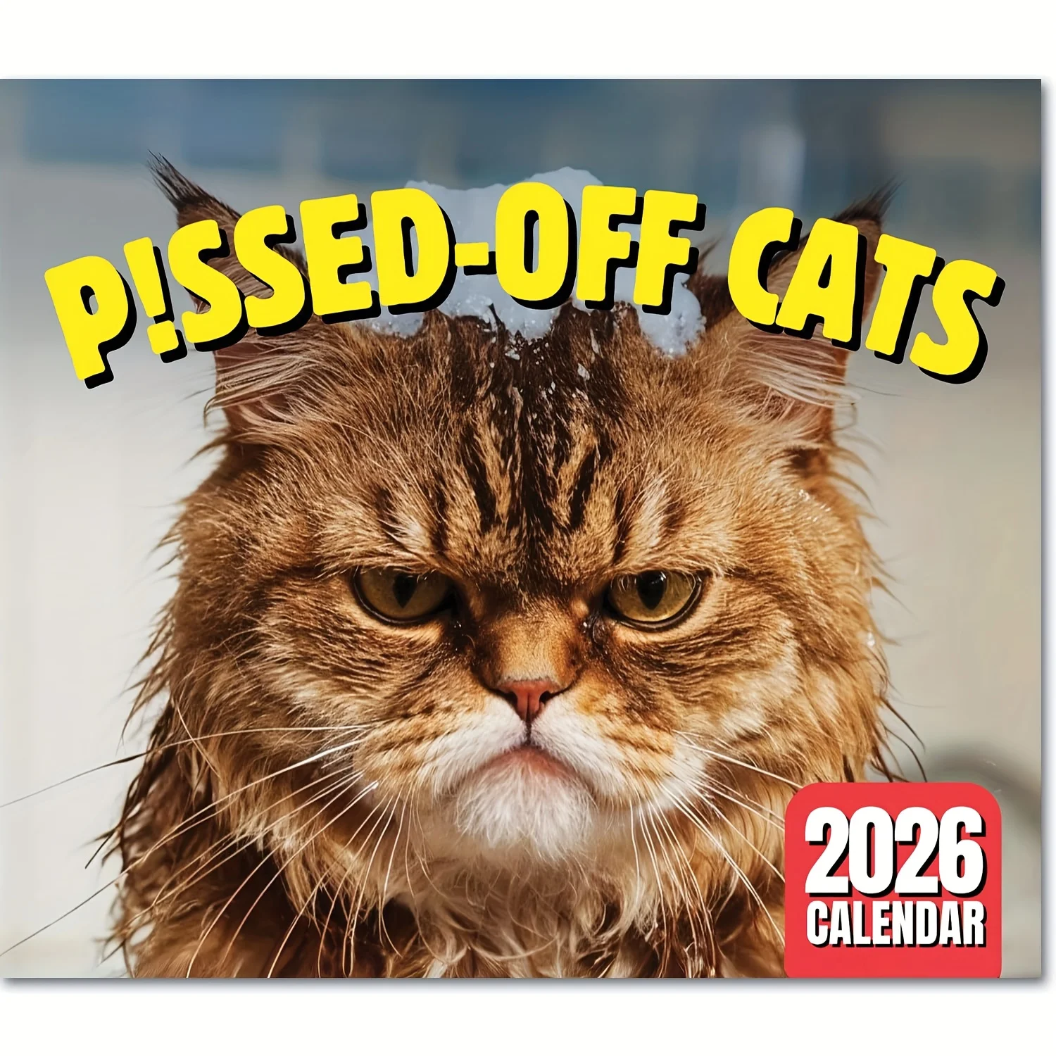 Peed-Off Cat Wall Calendar 2026 Funny Cat Meme Monthly Hanging Format Home Office Decor New Year Gift 12 Monthly Family Planner