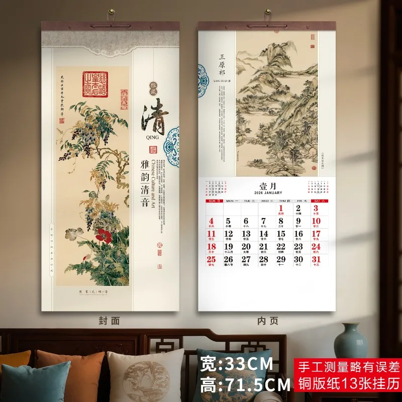 2026 Chinese Wall Calendar Monthly, Traditional Zodiac The Year of Horse Hanging Spring Festival Lunar Year Calendar