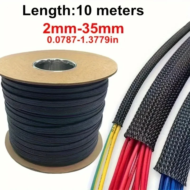 10m /32.8 British Ruler Pet Expandable Woven Mesh Casing Black Flexible Wire Mesh Sleeve Tv Audio Pc Wire Protection Pet Food Bite