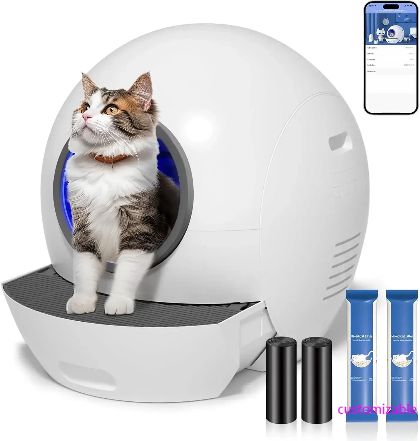 Self Cleaning Litter Box, Automatic Cat Litter Box with APP Control, Odor-Free Large Waste Bin, Open-Top for Multi Cats
