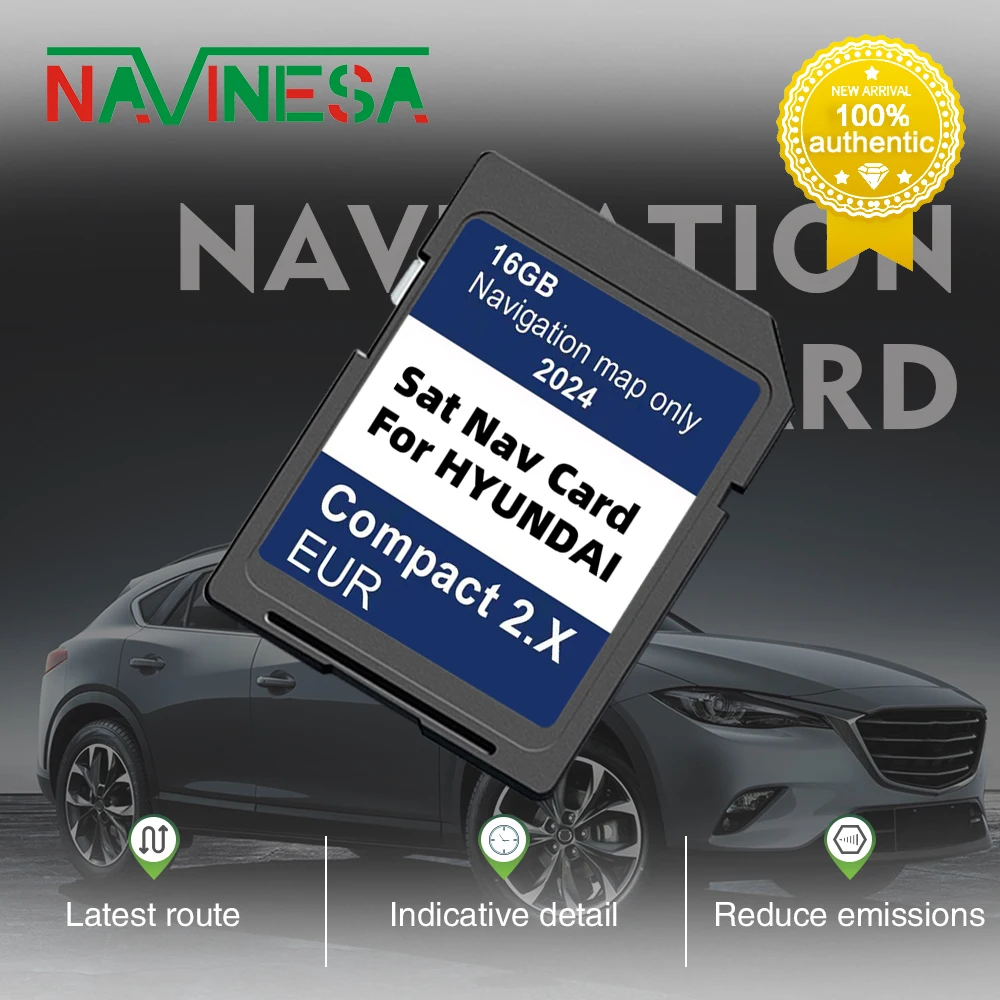 Latest 2025 Compact 2.X Navigation GEN2 Europe Map Plug and Play for Hyundai H1/i20/Santa Fe/Grand Santa Fe/Tucson 16GB SD Card