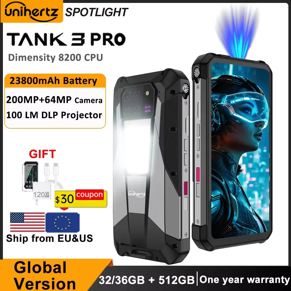 Unihertz Tank 3 Pro 8849 Rugged 5G Smartphone Android with 100 Lumens Projector 32GB 512GB 23800mAh 6.79" FHD Waterproof Phone  Read more