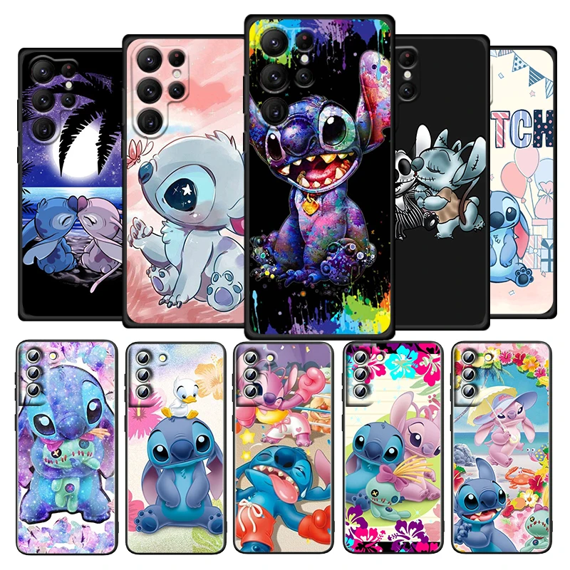 Lilo Stitch Cartoon For Samsung Galaxy S24 S23 S22 S21 S20 Ultra Plus Pro S10 S9 S8 S7 4G 5G Silicone Soft Black Phone Case