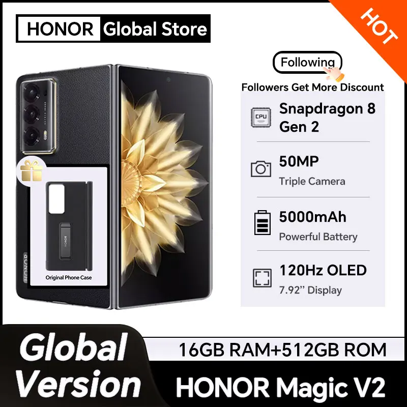 HONOR Magic V2 Global Version 5G Smartphone 7.92" Foldable OLED Display 120Hz 50MP Rear Cameras Snapdragon 8 Gen 2 5000mAh 66W