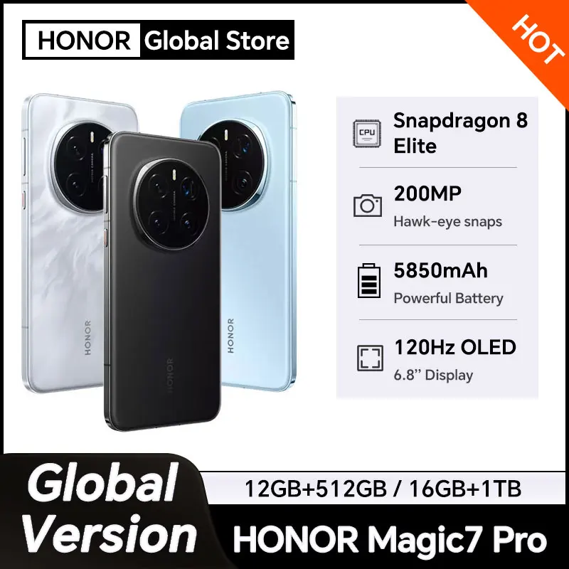 2025 New Arrivals HONOR Magic7 Pro Global Version 5G Smartphone Snapdragon 8 Elite 6.8'' 120Hz Display 100W SuperCharge IP69