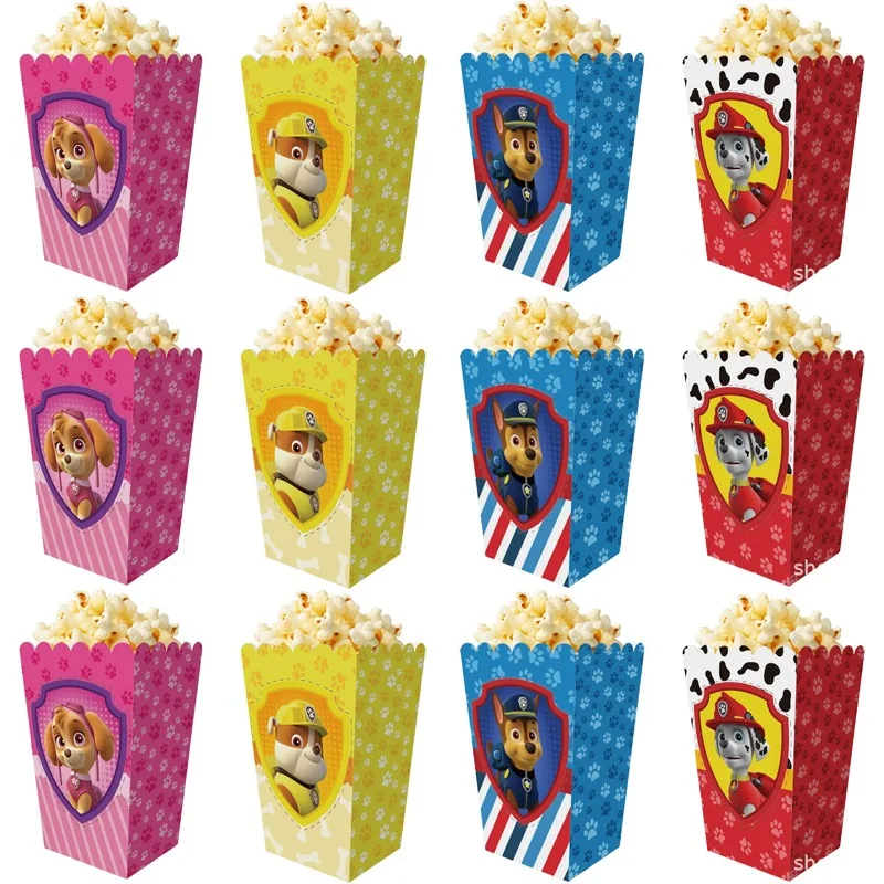 12Pcs/Set Paw Patrol Theme Candy Popcorn Box Cookies Chocolate Snacks Boxes Boy Girl Birthday Candy Box Party Supplies