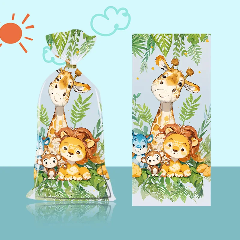 50pcs Jungle Animals Candy Gift Bags Wild One Safari Giraffe Lion Party Biscuit Packing Bag Kids 1st Birthday Party Decoration