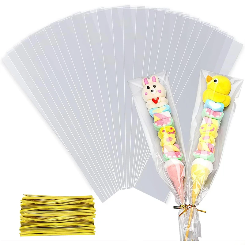 50/100pcs Clear Long Candy Treat Bag Cellophane Cookie Lollipop Plastic Bag Food Gift Packaging Wedding Birthday Decor Supplies