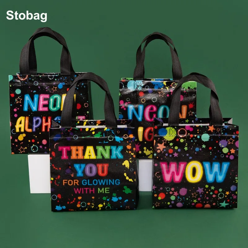 StoBag 8/20pcs Happy Birthday Black Non-woven Tote Bags Gift Candy Package Fabric Waterproof Storage Reusable Pouch Party Favors  Read more