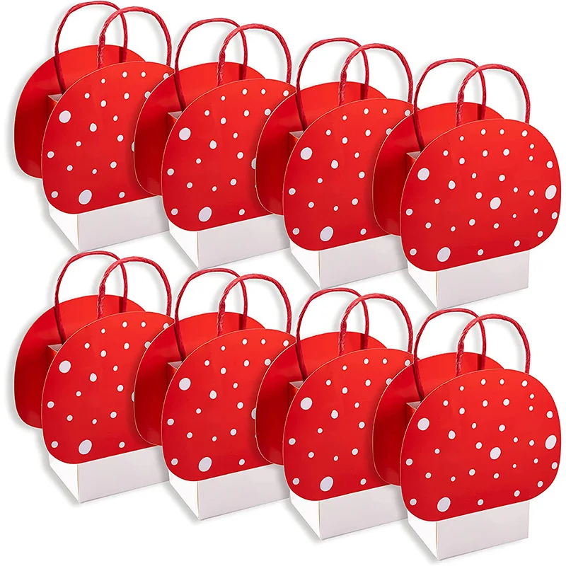 8Pcs Cute Red Mushroom Gift Candy Bag Mushroom Bag for Forest Jungle Wonderland Birthday Xmas Party Gift Bag For Kids Supplies