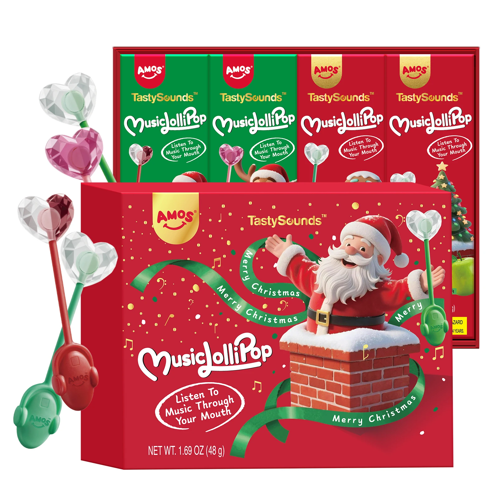 Amos TastySounds Audio Singing Smart Lollipop Gift Box 4-Pack Christmas Edition Bone Conduction Music Lollipop