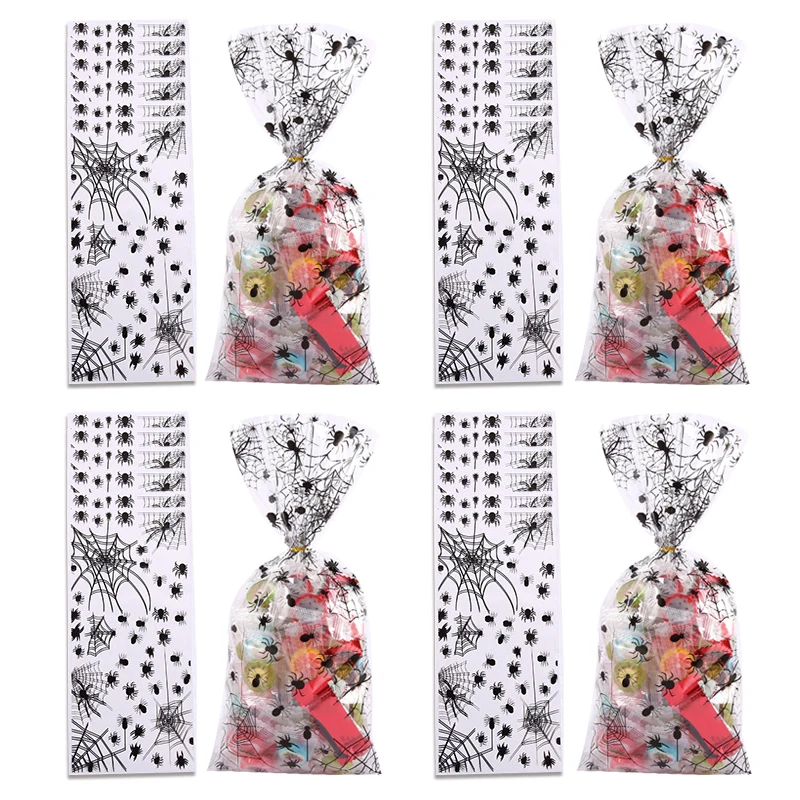 50pcs NEW Halloween Candy Bags with Opp Flat Pocket Spider Web Pattern Snack Biscuit Gift Bags For Party Decoration  Read more