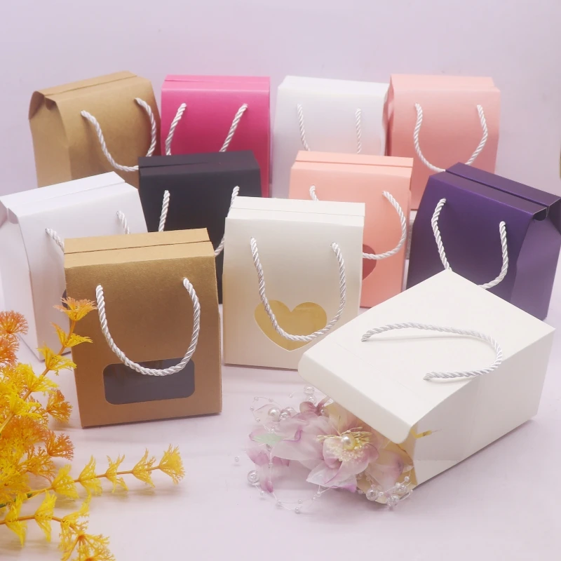 10pcs colorful gift handle box, multi-color window opening wedding candy, tea with rope packaging box  Read more