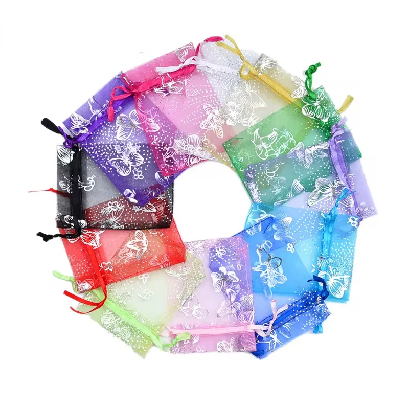 50PCS Luxury Butterfly Printed Organza Bags Drawable Jewelry Pouch Gift Packaging Candy Bag For Wedding Party