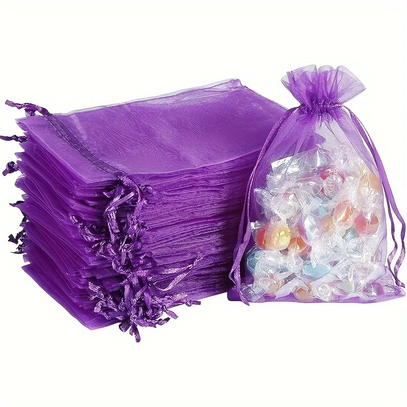 100pcs Dark Purple Drawstring Organza Bags Small Jewelry Bag Birthday Christmas Wedding Gifts Packing Pouches Candy Bags 4 Sizes  Read more
