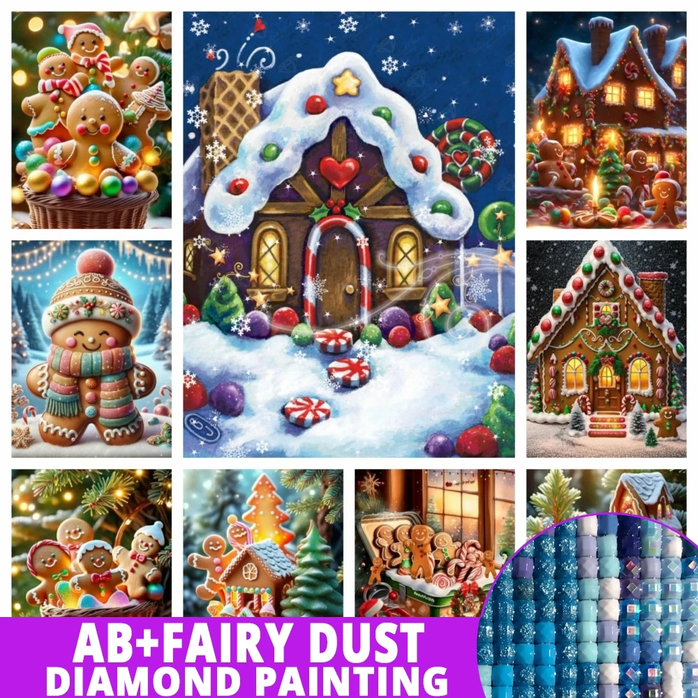 Fairy Dust AB 2024 New Gingerbread Man And Candy House Diamond Painting Classical Holiday Sweet Food Decor Art Mosaic Hand Gift  Read more