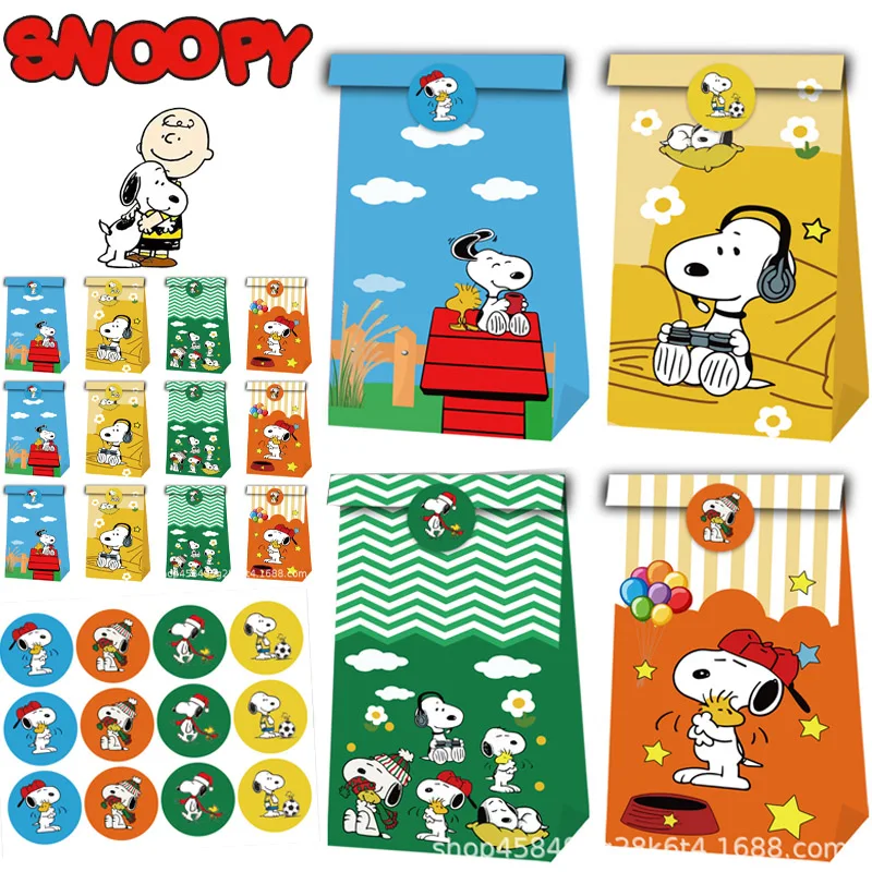 12PCS Snoopy Kraft Paper Candy Cookie Bag Party Favor Bags Recyclable Shopping Bags Christmas Gift Packing Bags Party Decoration