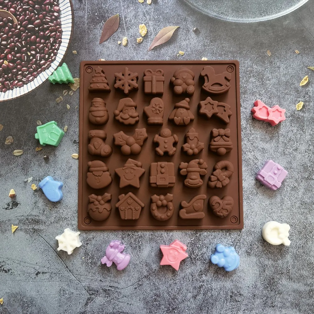 25 Cavity Variou Shapes Christmas Silicone Chocolate Mould DIY Cookies Cake Baking Xmas Tree Candy Santa Claus Gift Mold Tools