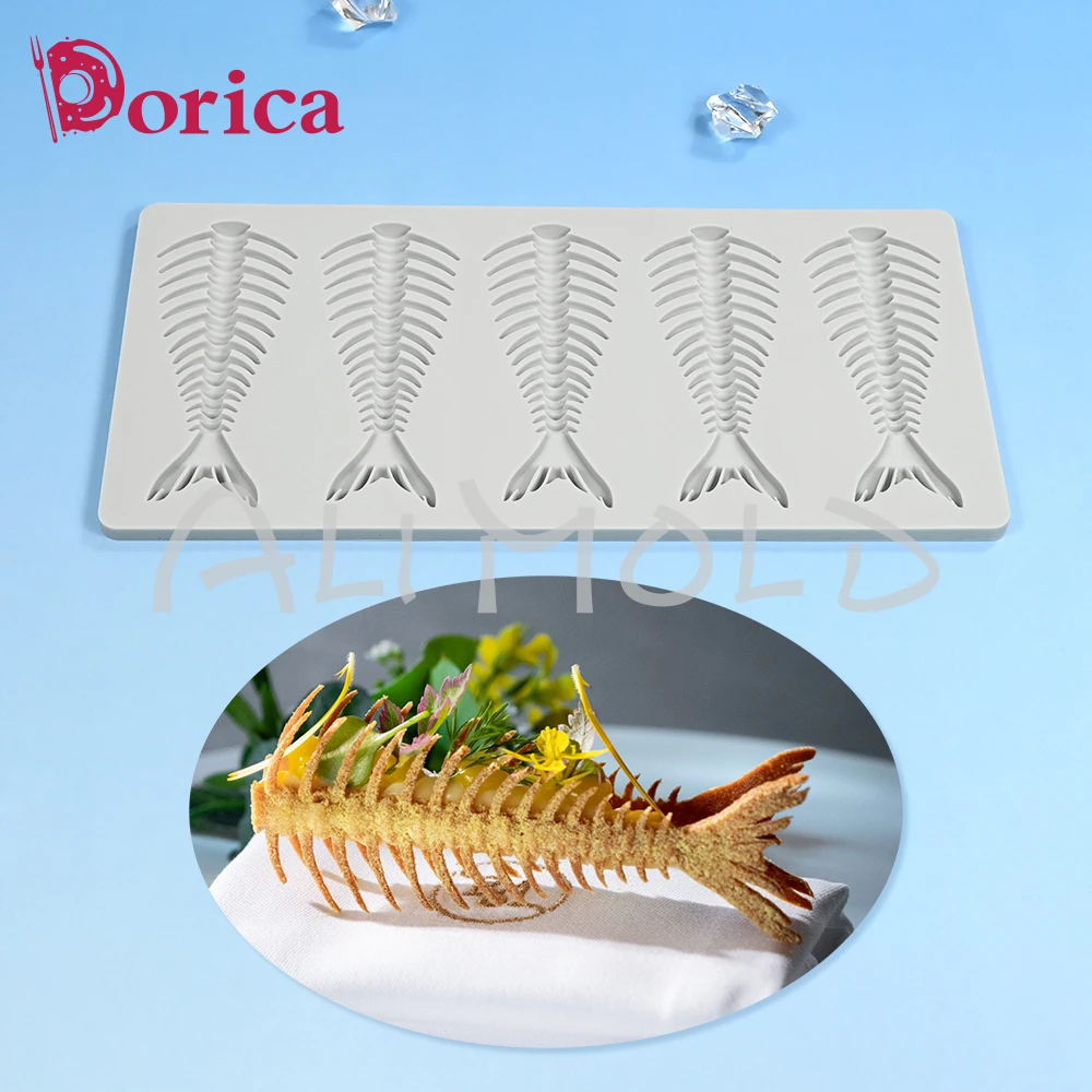 5 Cavities Fishbone Shape Silicone Lace Mat Handmade Sugarcraft Chocolate Mould DIY French Dessert Cake Decorating Tool Bakeware