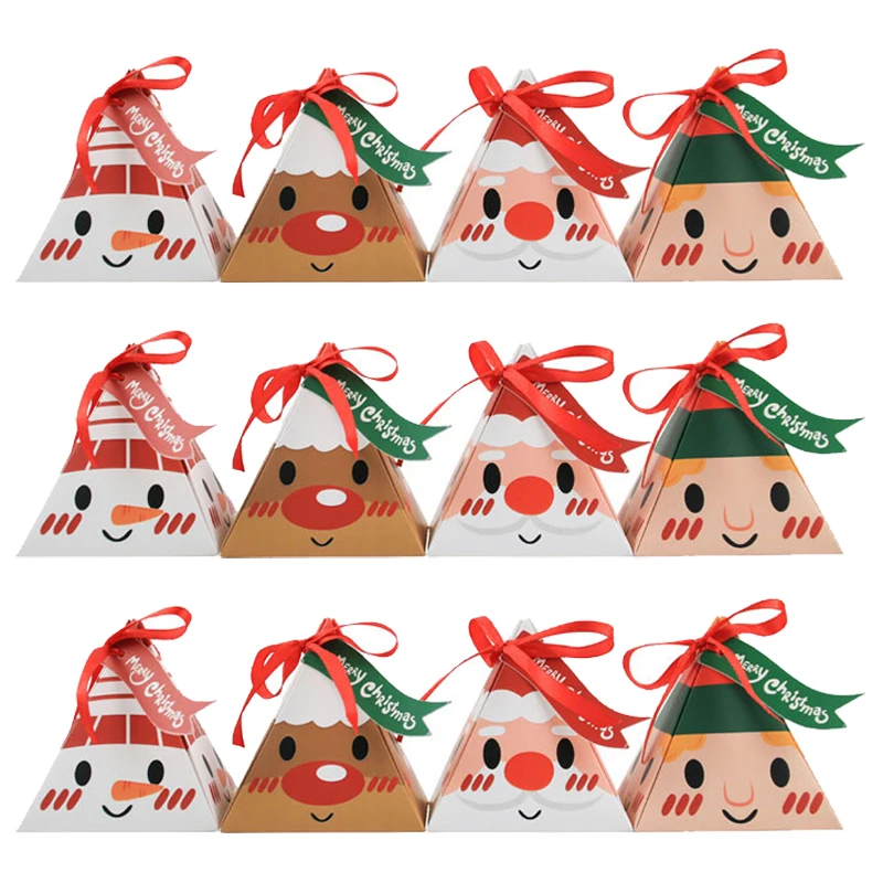 12/24pcs Christmas Candy Gift Box with Tag Ribbons Cookie Snack Chocolate Packaging Box 2025 Xmas New Year Party Navidad Noel