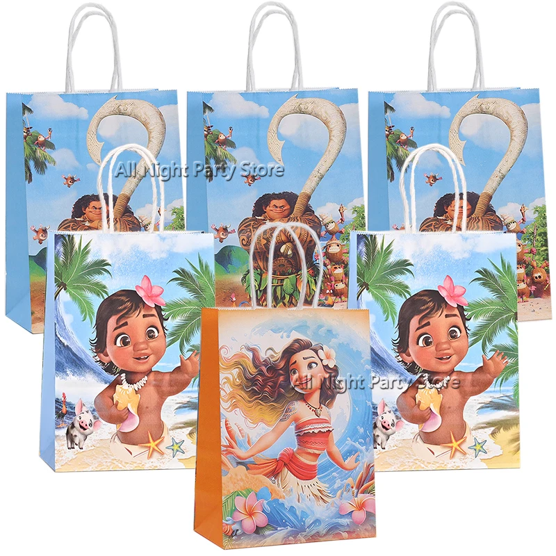 12-60Pcs Moana Princess Theme Party Paper Candy Bag With Sticker Moana Girls Birthday Candy Packing Bag Baby Shower Supplies