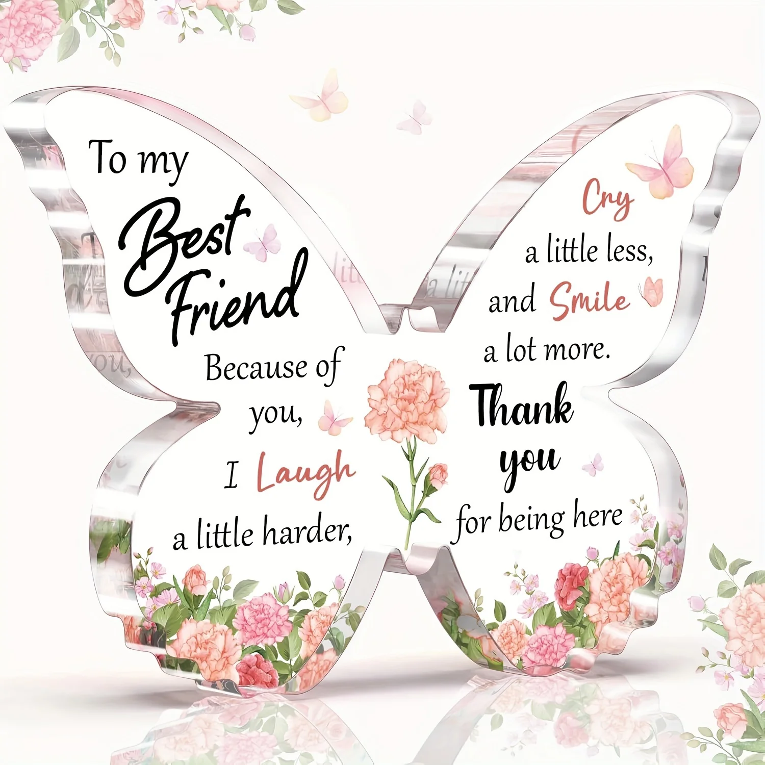 Bestie Gifts for Women, Friend Birthday Gifts, Friendship Gifts for Women - Butterfly Shaped Acrylic Decoration for Bestie
