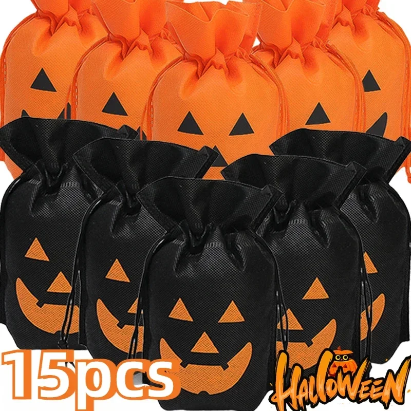 1-15PCS Halloween Pumpkin Candy Bag Non-woven Portable Biscuit Gift Bag Sugar Storage Pouch Halloween Party Supplies Kids Favors