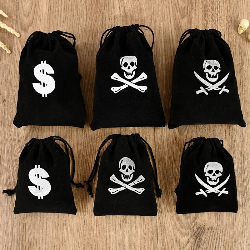 5/20Pcs Pirate Theme Treasure Gold Coin Bags Trick Or Treat Candy Cookies Gifts Drawstring Pouch For Kids Halloween Party Decor
