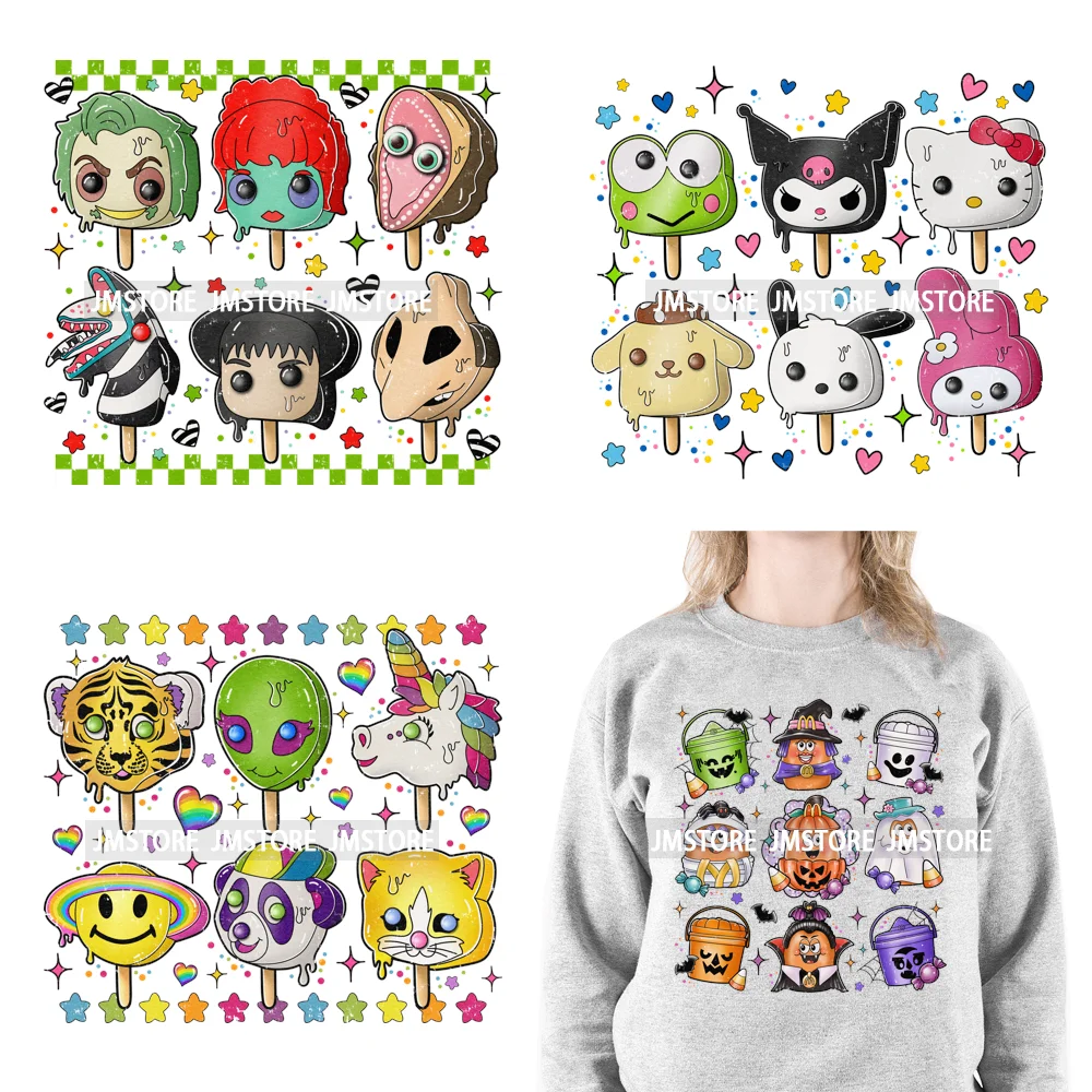 Colorful Horror Cartoon Character Ice Cream Dessert Halloween Sweets Summer Popsicle DTF Iron On Transfer Stickers For Clothes