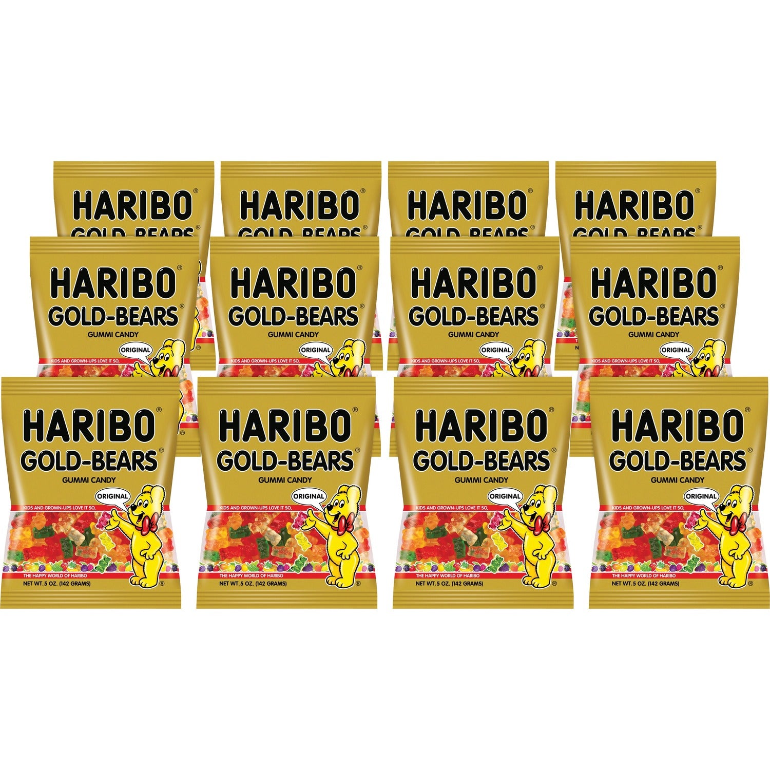 A delicious fat-free snack. Kids and grown-ups love it so. The happy world of Haribo®. Try Haribo®, the original Gummi candy. Food Type: Candy; Flavor: Gummi Bears - Original Assortment; Capacity (Weight): 5 oz; Packing Type: Bag.