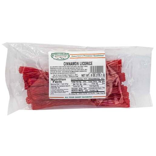 Sportsman's Warehouse Cinnamon Licorice - 8 Servings - Enjoy this red licorice with a twist in flavor of Cinnamon from your usual red licorice with this bag of candy from Sportsman's Warehouse.