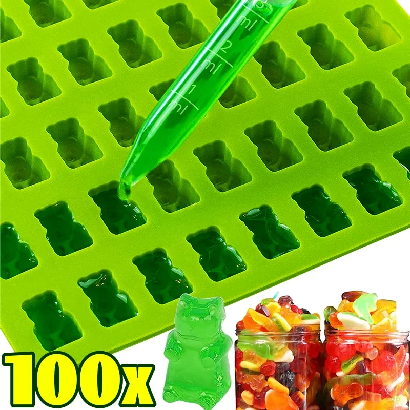 50/100 Grids Silicone Gummy Mini Bear Molds Cute Fondant Pastry Chocolate Candy Maker Cake Decorating Tools DIY with 2 Droppers