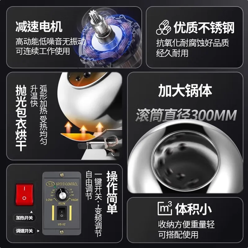 110V 220V Chocolate Candy Peanut Sugar Coating Machine Nut Dragee Pan Machine Ice Cream Chocolate Coater Coating Pan Machine
