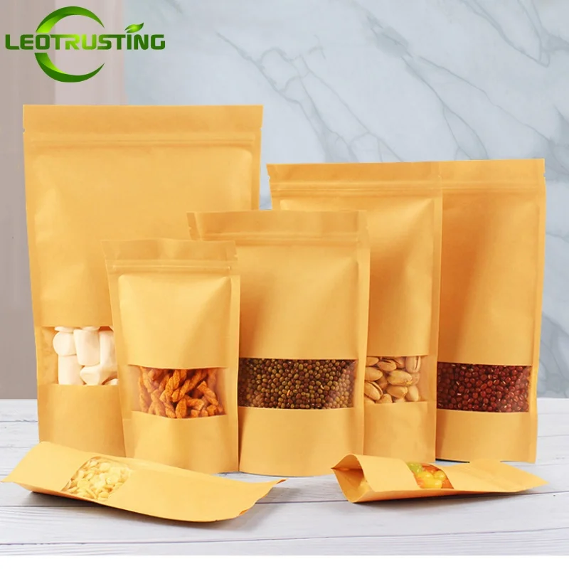 50PCS Kraft Paper Clear Window Ziplock Packaging Bag DIY Stand-up Matcha Cocoa Tea Snack Sugar Coffee Candy Beaf Storage Pouches