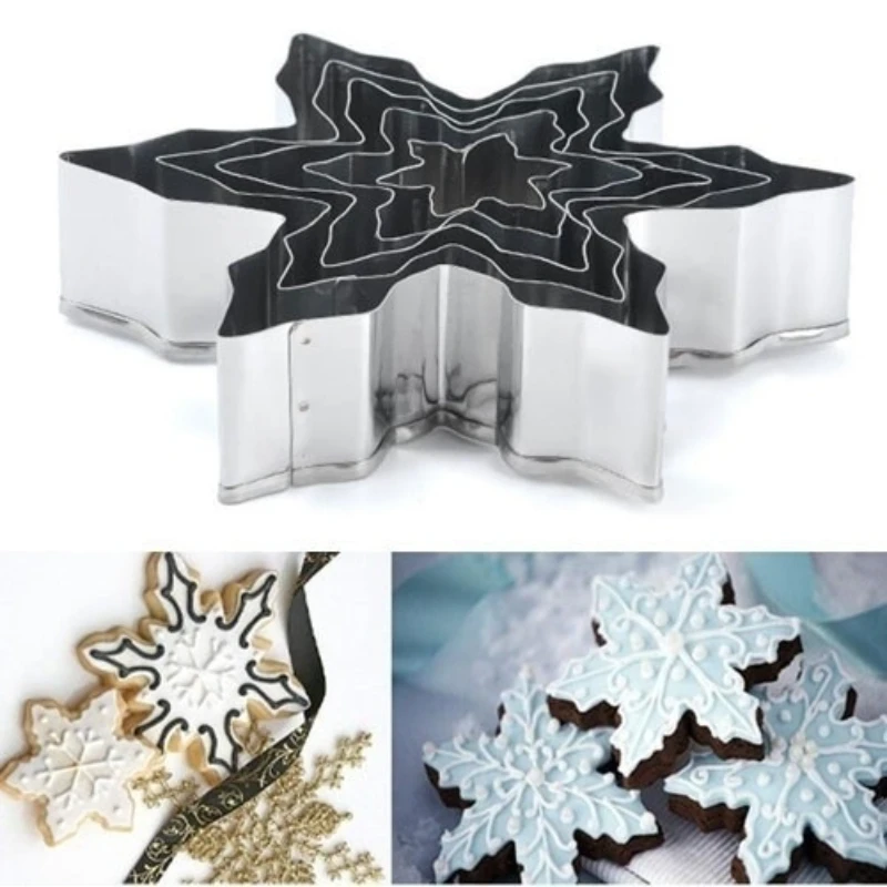 5pcs/set Snowflake Cutter Cookies Stainless Steel Fondant Christmas Cake Pastry Mould DIY Kitchen Baking Tool (Color: Silver)  Read more